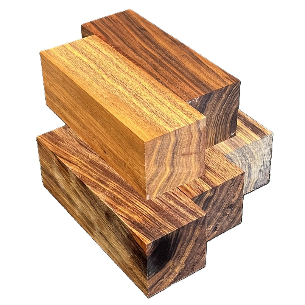 Curupau (Anadenanthera colubrina)—also known as Patagonian Rosewood—is a dense South American hardwood prized for its dramatic figure, rich color, and exceptional durability. The wood ranges from golden brown to deep reddish-brown, often highlighted by dark streaks and bold contrast that give it a rosewood-like appearance. Curupau turns cleanly with sharp tools, producing crisp detail and smooth surfaces. Its high density and fine grain allow it to polish to a rich, glossy finish. When properly dried, curupau is very stable and well suited for demanding turning applications and precision work. Common uses include turning blanks, bowls, spindles, pens, tool handles, knife scales, musical instruments, and decorative turnings.