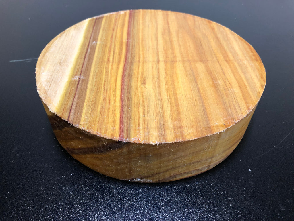 Suitable for inexperienced turners. Wood typically has some variations in color. The wood is predominantly light to medium yellow, but frequently contains streaks of burgundy, orange and/or black as well. This species is moderately dense. Grain is typically straight. Sands to a high lustre, finishes easily, and is stable when dried.
