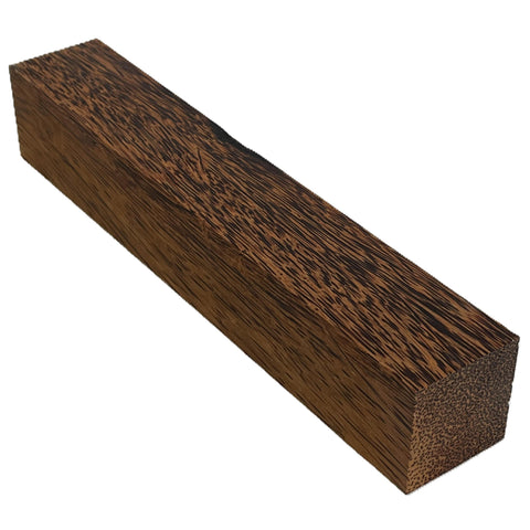 Red Palm turns differently than hardwoods and requires very sharp tools and light cuts. The material is hard and brittle, so stabilization or careful finishing is often recommended. When properly handled, it sands and finishes to a striking, high-contrast surface unlike any true wood.